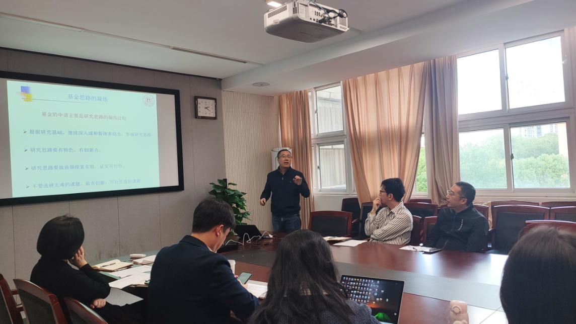 交流分享环节干货满满、务实高效。首先,王宗宝老师以自身主持的国家自然科学基金项目为实例,聚焦“科学选题”与“高质量标书撰写”两大核心议题展开深度分享。他从科研方向锚定、基金思路凝练、申请书撰写三个关键维度系统授课,结合具体案例详解科学问题提炼、创新性研究方案设计等核心要点,为参会教师提供了兼具理论性与实操性的指导。随后,薛金鹏老师结合国家青年科学基金申报的亲身经历,分享了从前期筹备到申报冲刺的全流程心得,重点提示了申报过程中的关键注意事项。